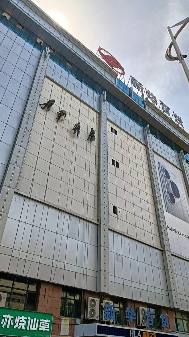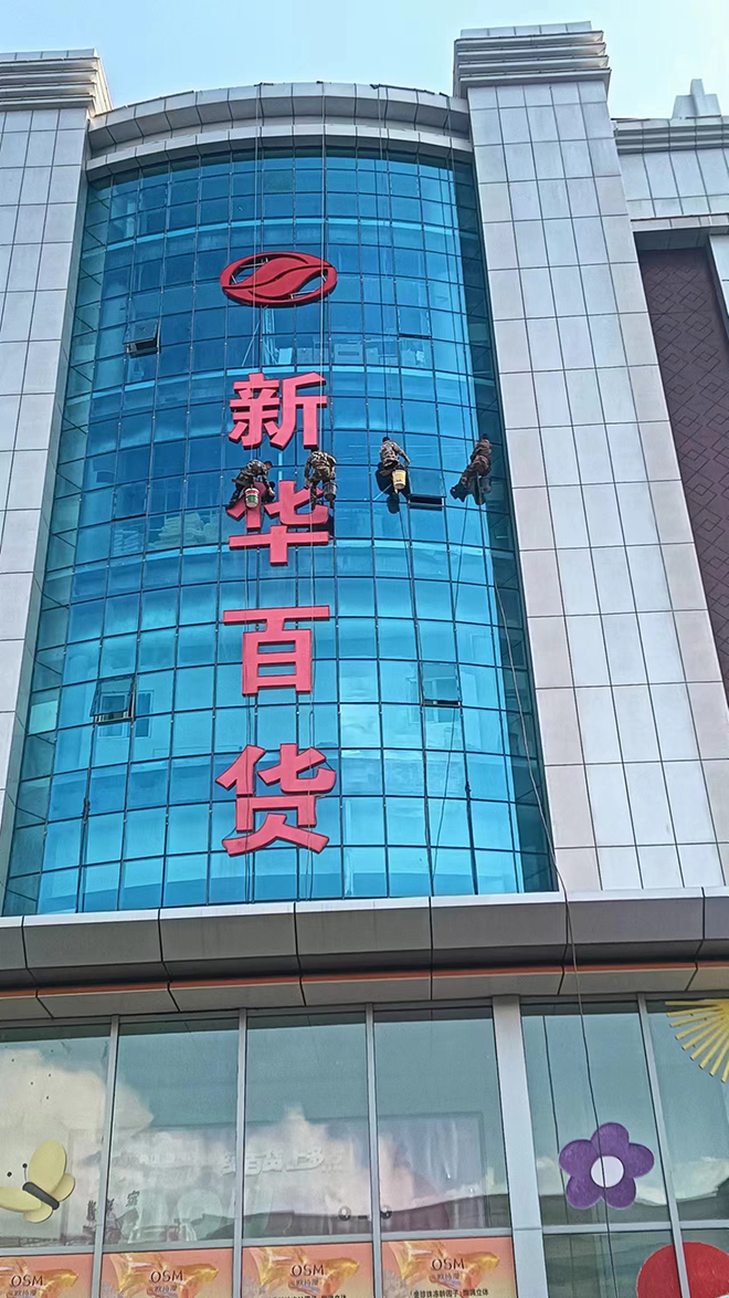 我司承接固原新華百貨外墻清洗項目
