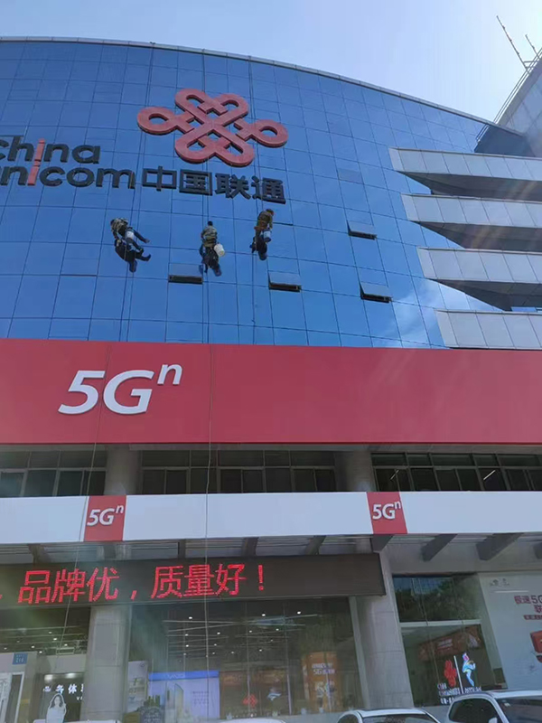 銀川利潔凈工程清洗有限公司承接中國聯(lián)通公司外墻玻璃清洗項目