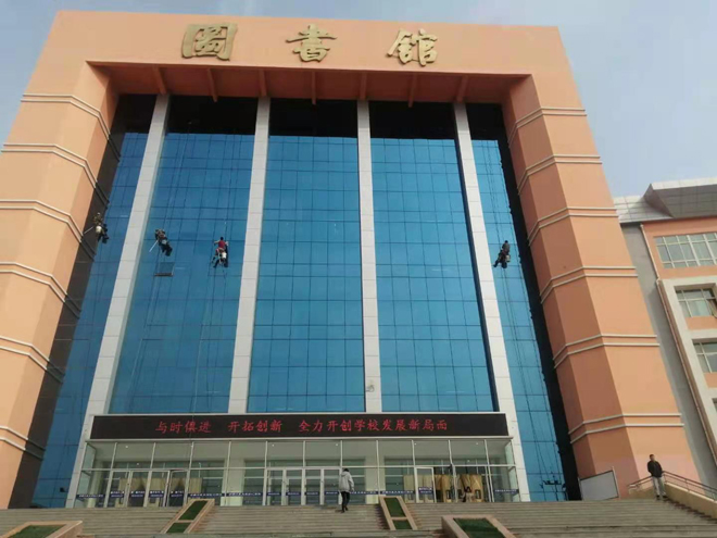 我公司完成寧夏礦業(yè)大學(xué)圖書館外墻玻璃清洗項(xiàng)目